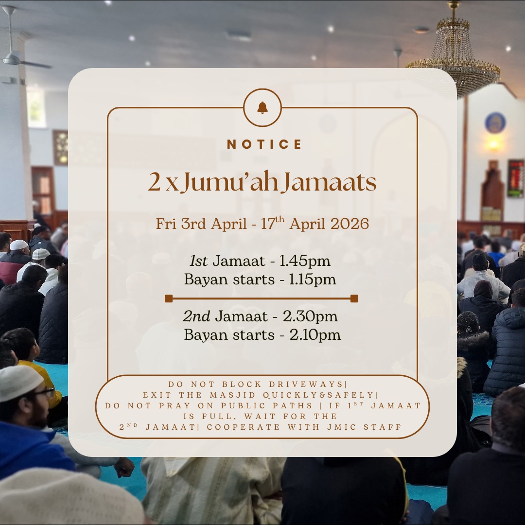 | Prayer | Fajr | Dhur | Asr | Maghrib | Isha | Jummah |