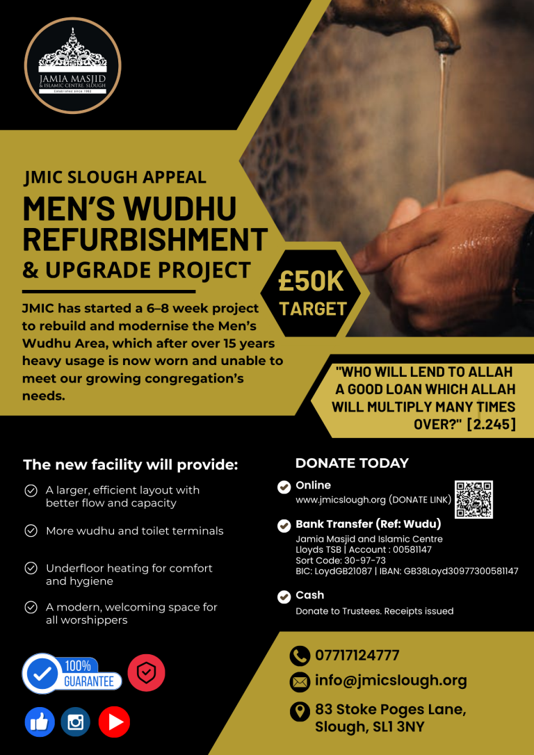 JMIC is open 365 days a year, welcoming worshippers to use our prayer facilities for daily prayers, including Jumu’ah, Ramadan, and Eid services. During regular hours, the prayer halls open for Fajr (early morning prayer), reopen at 11:00am in Winter and 12.00noon in Summer, and remain accessible until Isha, the final prayer of the day.
